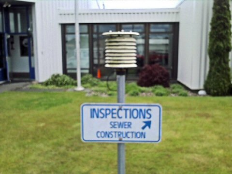 In Aberdeen, a sewage treatment plant near this temperature sensor probably creates ambient warm air. This photo was taken from a parking area just in front of the sensor; the hot automobile radiators of the cars probably influences temperatures as well.