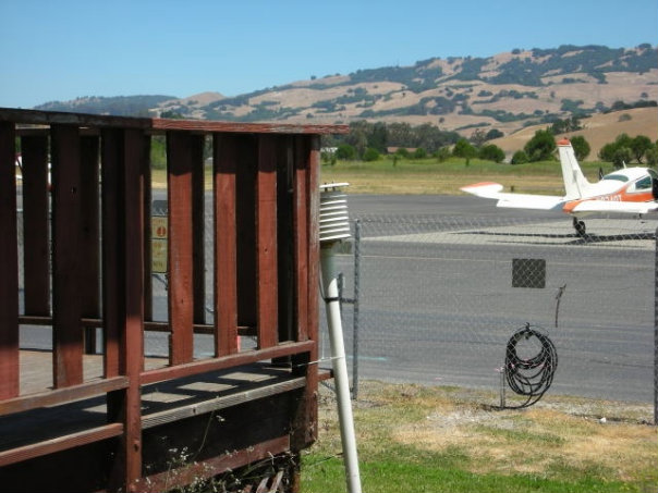 Yes, that’s an airplane in the background: This temperature sensor sits beside the Petaluma airport in California. It’s also six feet from a house, where air conditioners exhaust directly towards it.