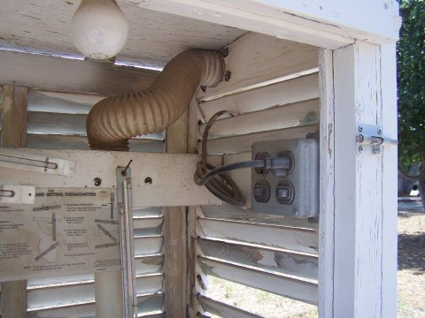 A light bulb in a temperature sensor’s shelter may make it easier to take a reading. And the heat from the bulb may also affect the temperature inside the shelter.