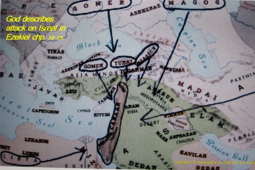 “This is another message that came to me from the Lord: ‘Son of man, prophesy against Gog of the land of Magog, the prince who rules over the nations of Meshech and Tubal. Give him this message from the Sovereign Lord: Gog, I am your enemy! I will turn you around and put hooks into your jaws to lead you out to your destruction. I will mobilize your troops and cavalry and make you a vast and mighty horde, all fully armed. Persia, Ethiopia, and Libya will join you, too, with all their weapons. Gomer and all its hordes will also join you, along with the armies of Beth-togarmah from the distant north and many others.'” Ezekiel 38:1-6 (NLT)